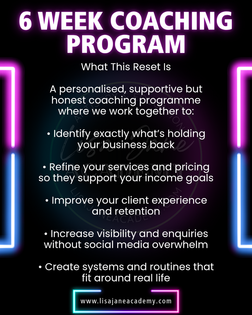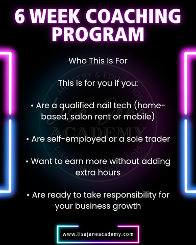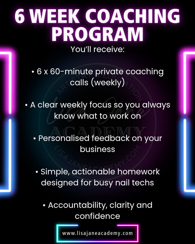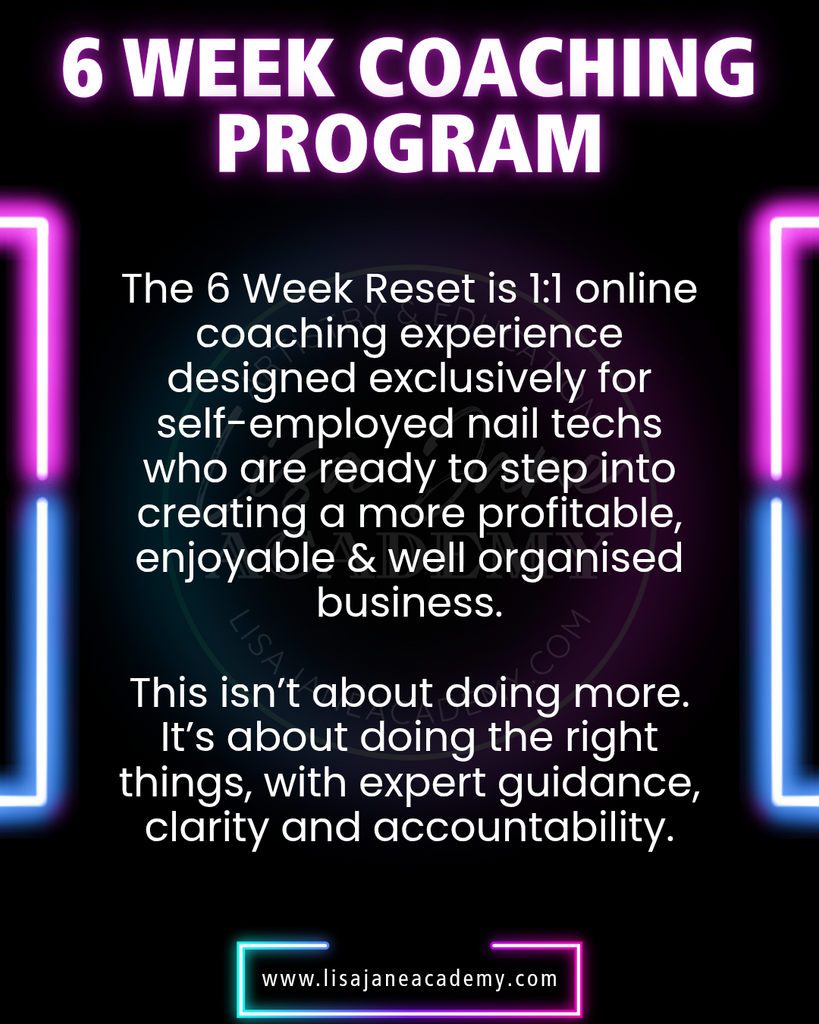 The 6 Week Reset is a 6-week 1:1 online coaching experience designed exclusively for self-employed nail techs who are ready to step into creating a more profitable, enjoyable & well organised business.